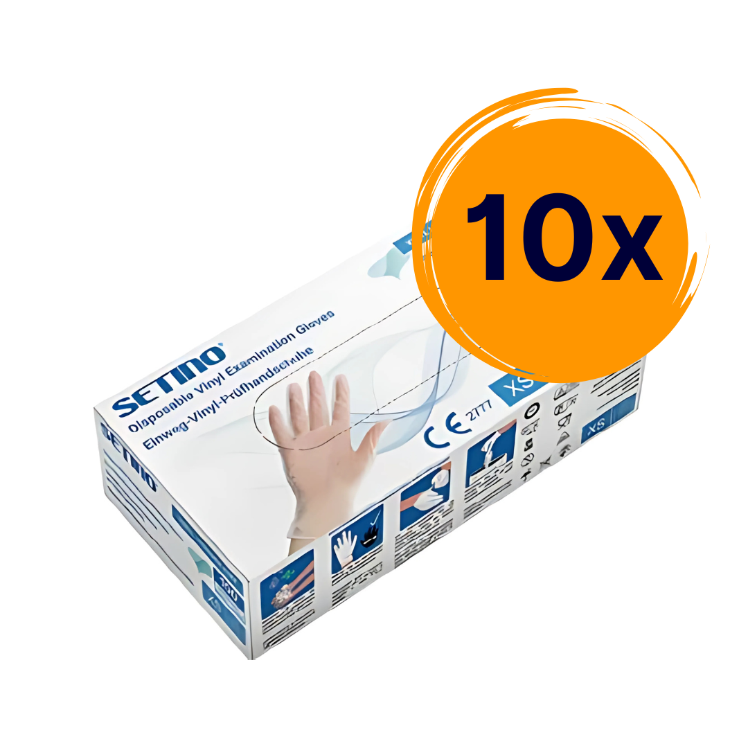 10 dooz Setino latex- és púdermentes vinyl áttetsző védőkesztyű