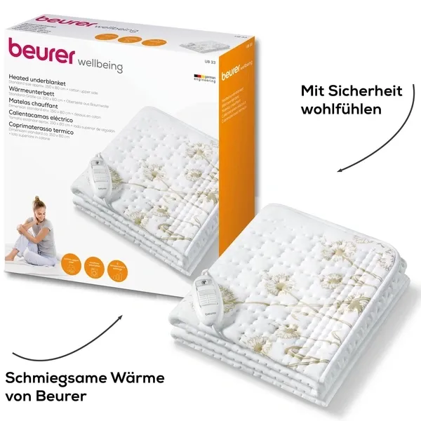 A Beurer UB 33 elektromos ágymelegítő betét praktikus és kényelmes megoldást kínál az ágy gyors és egyenletes felmelegítésére. Puha, bőrbarát anyagból készült, amely kellemes érzetet nyújt, miközben három fokozatban szabályozható hőmérséklete lehetővé teszi, hogy mindig a számodra legmegfelelőbb hőfokot választhasd. A készülék Beurer Safety System technológiával van ellátva, amely túlmelegedés esetén automatikusan lekapcsol, így gondoskodik a biztonságos működésről. A levehető vezérlőegység egyszerű kezelhetőséget biztosít, és lehetővé teszi, hogy a betét mosógépben mosható legyen — ez különösen fontos a rendszeres, higiénikus használathoz. A betét 150 × 80 cm-es mérete ideális egyszemélyes ágyhoz, rögzíthető kialakítása pedig biztosítja, hogy használat közben ne csússzon el. Egyszerű kezelése és megbízható működése miatt kiváló választás mindennapi használatra.